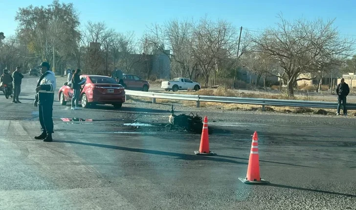 Grave accidente en Santa Lucía: moto se incendió tras impactar con un auto
