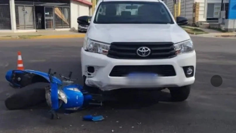El choque ocurrió en la intersección de Pueyrredón y 9 de Julio. La víctima, que conducía una moto, fue trasladada al Hospital Rawson y la Justicia ya investiga el hecho.