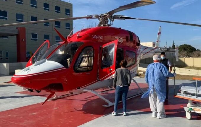 Un helicóptero sanitario fue activado para realizar el traslado de urgencia, aterrizando posteriormente en la explanada del Hospital Rawson, donde la paciente quedó internada bajo estricta observación médica.