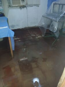Según explicó Merino, el hogar de tránsito de la organización —que cuenta con un anexo de atención veterinaria denominado “Sala de Emergencia”— sufrió una inundación total. Como consecuencia, se desplomó el techo de una de las habitaciones donde se almacenaban insumos médicos descartables, pañales y otros elementos fundamentales para la atención de los perros internados.