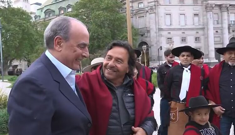 El mandatario provincial viajó al centro de la Ciudad de Buenos Aires y se mostró junto a un nutrido grupo de gauchos con el fin de visibilizar la situación ante la falta de respuesta del Ejecutivo. Sin embargo, automáticamente, quien se acercó a saludarlo fue el jefe de Gabinete, Guillermo Francos.