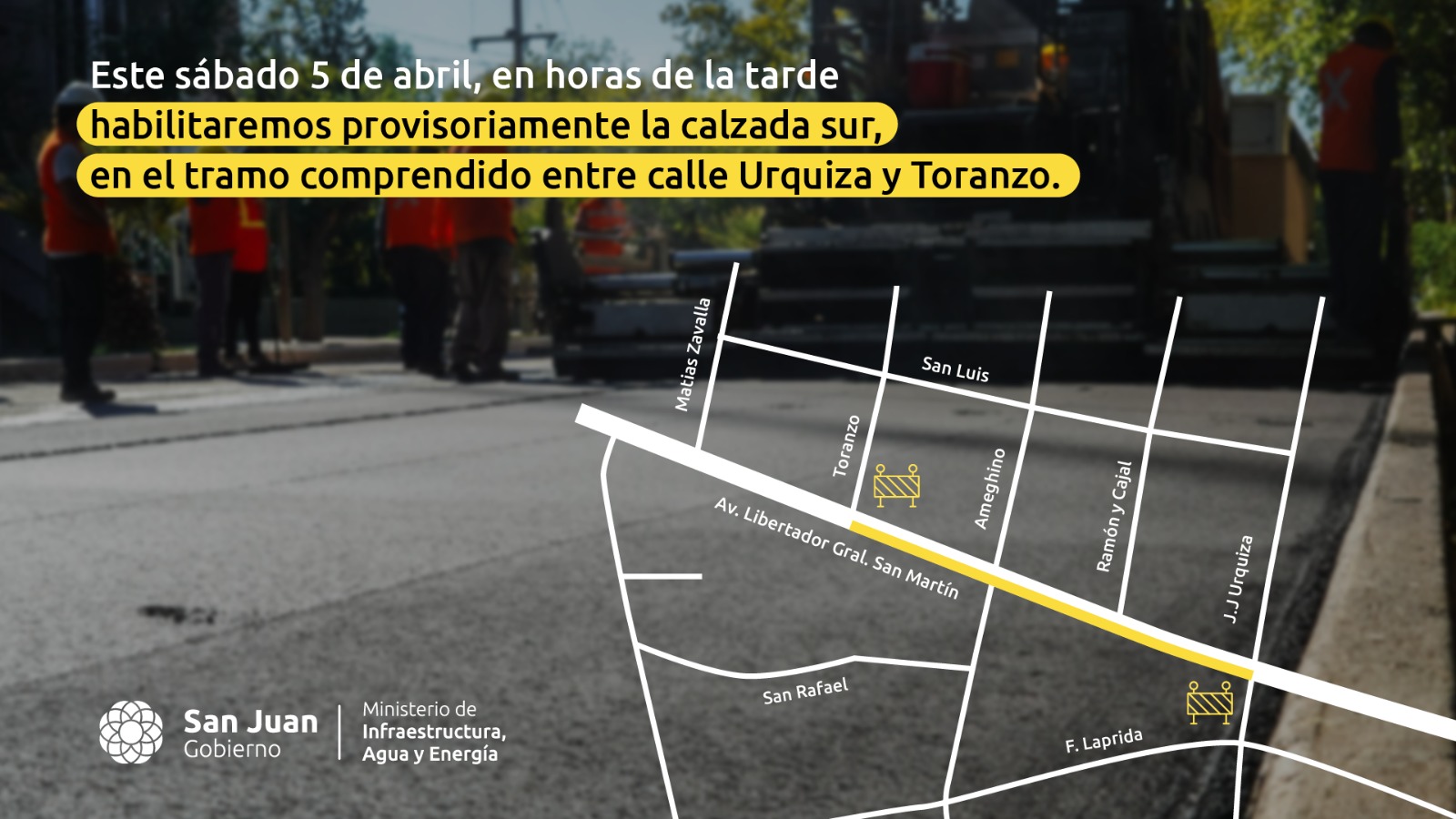 Mañana sábado, en horas de la tarde, quedará habilitada provisoriamente la calzada sur de avenida Libertador, en el tramo comprendido entre Urquiza y Toranzo.