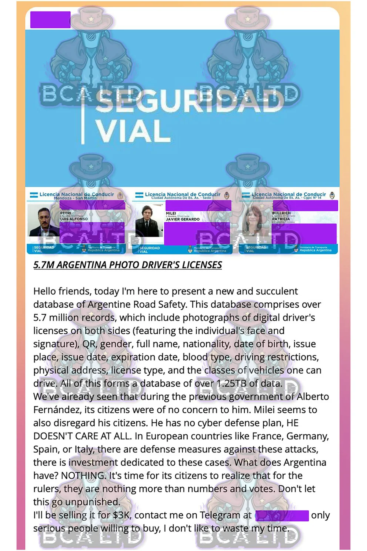 Hackers tomaron el poder de 5,7 millones de licencias de conducir. Entre las imágenes que se difundieron está la licencia del presidente Javier Milei.