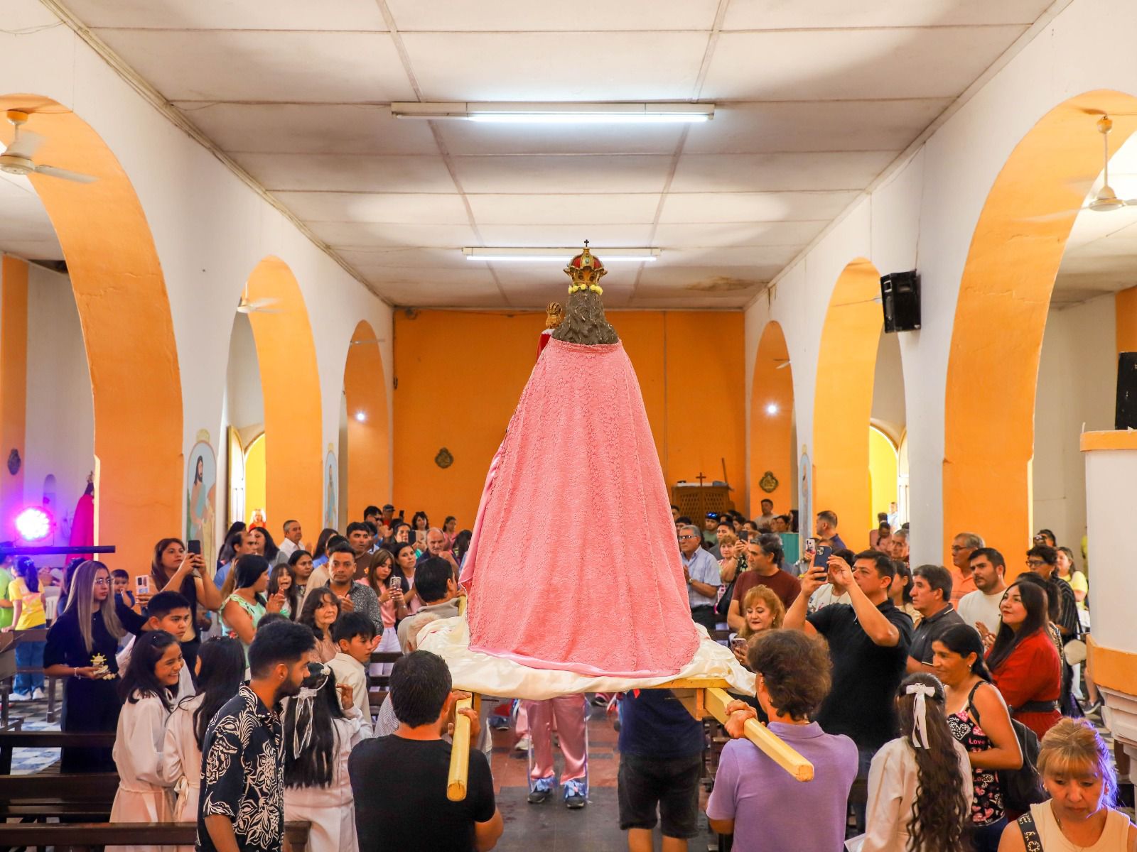 La devoción a la Virgen de Andacollo tiene su origen en el siglo XVI, en la localidad de Andacollo, Chile, donde la imagen comenzó a ser venerada por pueblos originarios y comunidades criollas. Con el paso del tiempo, su culto se extendió por la región, cruzando fronteras y llegando al territorio, donde generaciones de familias mantienen viva esta manifestación de fe popular. Su figura es símbolo de protección, consuelo y esperanza, especialmente para quienes peregrinan confiando en su intercesión.