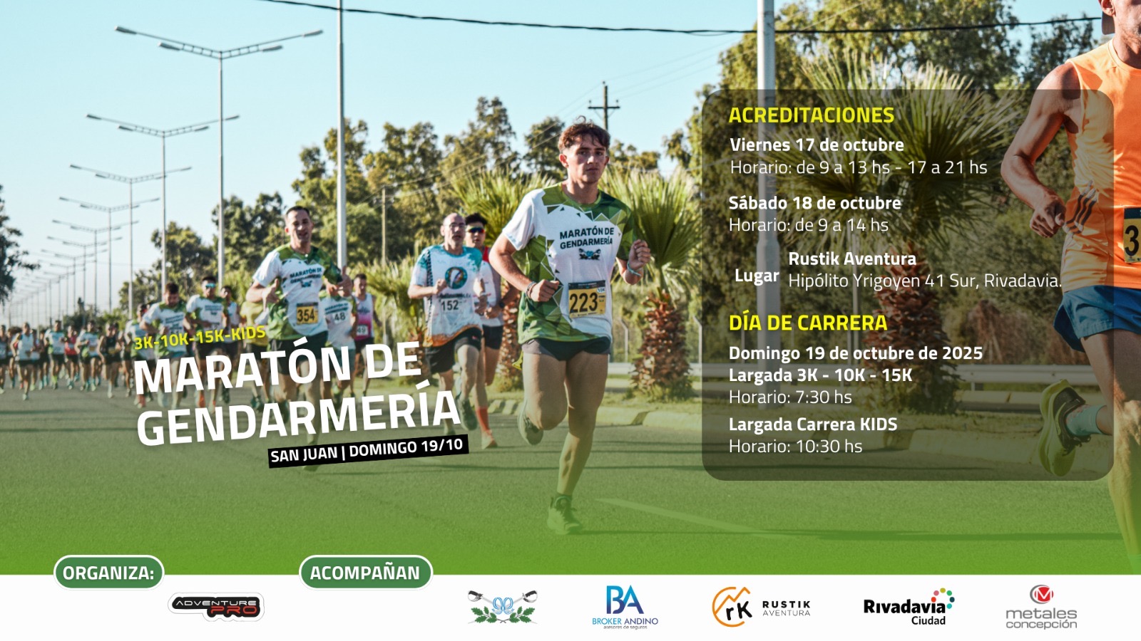 Este domingo 19 de octubre, fecha en la que se celebra el Día de la Madre, la comunidad sanjuanina tendrá una nueva cita con el deporte y los valores en movimiento con la realización de la Maratón de Gendarmería Nacional. La jornada tendrá como punto de encuentro el Escuadrón Núcleo San Juan, ubicado sobre calle Galíndez, en Marquesado.