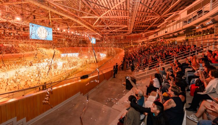 El gobernador Marcelo Orrego presenció el espectáculo artístico que reunió a más de 300 artistas sanjuaninos en el Velódromo Vicente Chancay.