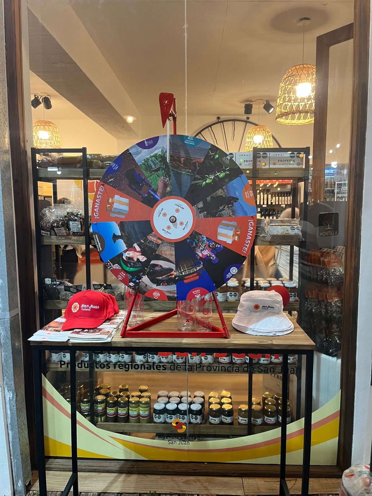 Además, una ruleta interactiva con preguntas sobre la provincia ofrecía premios a quienes se animaran a participar, incentivando el conocimiento sobre los atractivos turísticos y culturales de San Juan.
