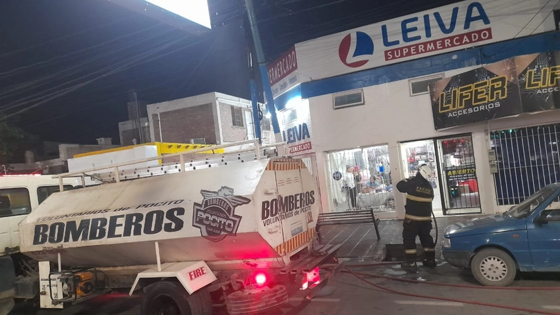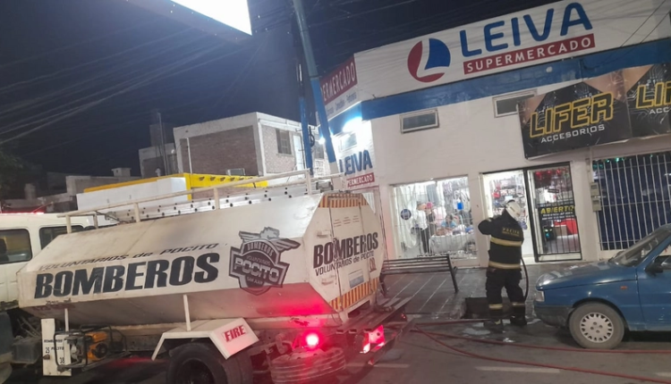 El fuego se desató en el cableado de alta tensión ubicado detrás del Supermercado Leiva. Los clientes fueron evacuados de manera preventiva y no hubo heridos.