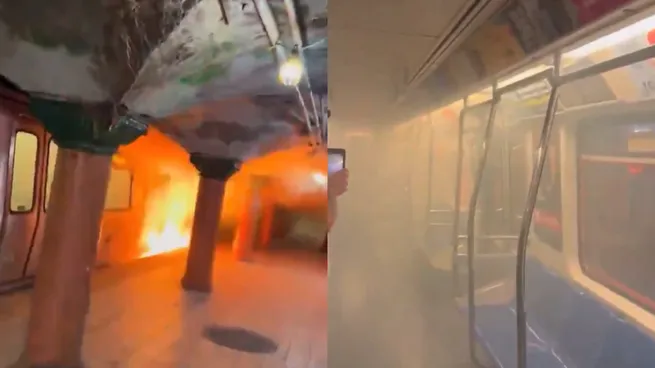 El fuego comenzó en las vías durante la mañana y generó caos en un vagón, donde los pasajeros debieron salir rápidamente ante el humo denso y las llamas visibles.