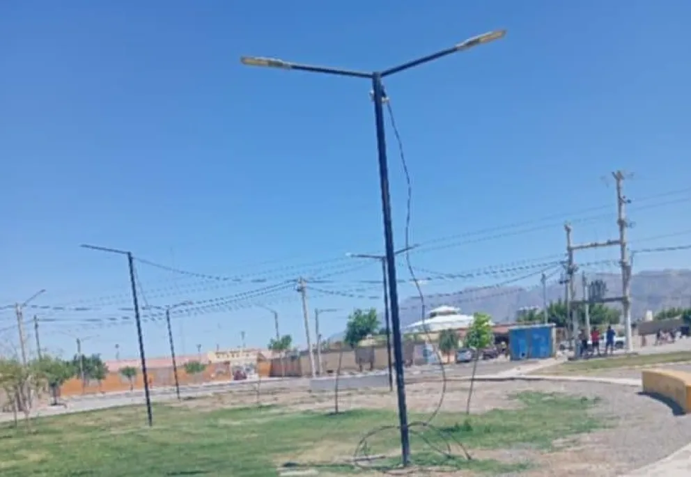 Vecinos del barrio Nuevo Cuyo, en La Bebida (Rivadavia), denunciaron un nuevo hecho de vandalismo en la plaza del lugar. Durante la madrugada de este martes, delincuentes se robaron las farolas del espacio verde y el cableado eléctrico, dejando parte de la instalación destruida.