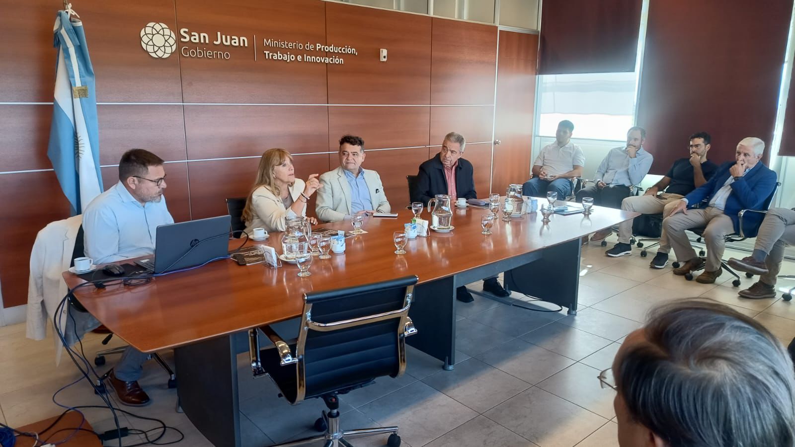 En el marco de la convocatoria, el secretario de Coordinación para el Desarrollo Económico, Alfredo Aciar, y el director de Comercio Exterior, Adrián Alonso, mantuvieron un encuentro con autoridades de Fundación ProMendoza y representantes de la Cámara de Vino a Granel, junto a funcionarios provinciales y delegados de 24 bodegas locales.