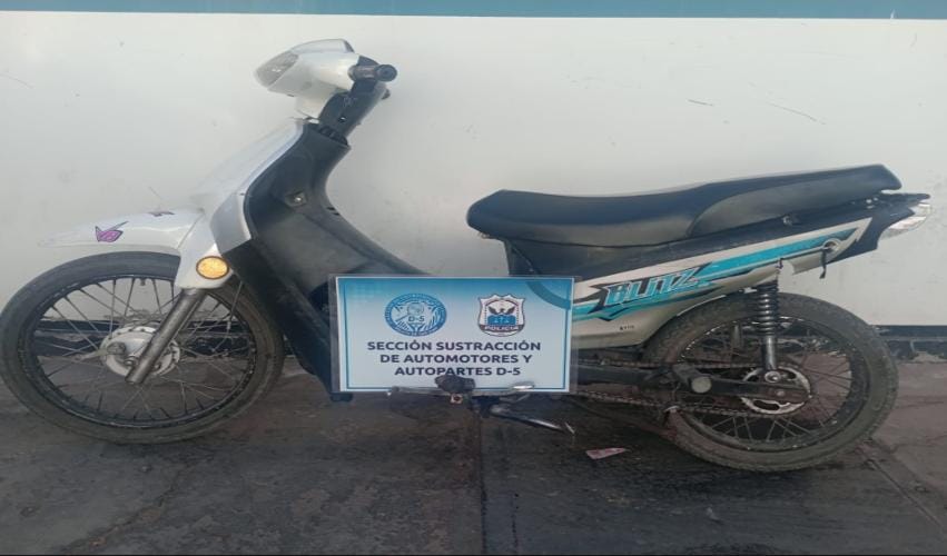 Rawson (2): Fue secuestrada una moto Motomel B110cc blanca, sin patente, denunciada por “hurto calificado” el 4 de julio de 2024. Intervino la UFI de Delitos Contra la Propiedad.