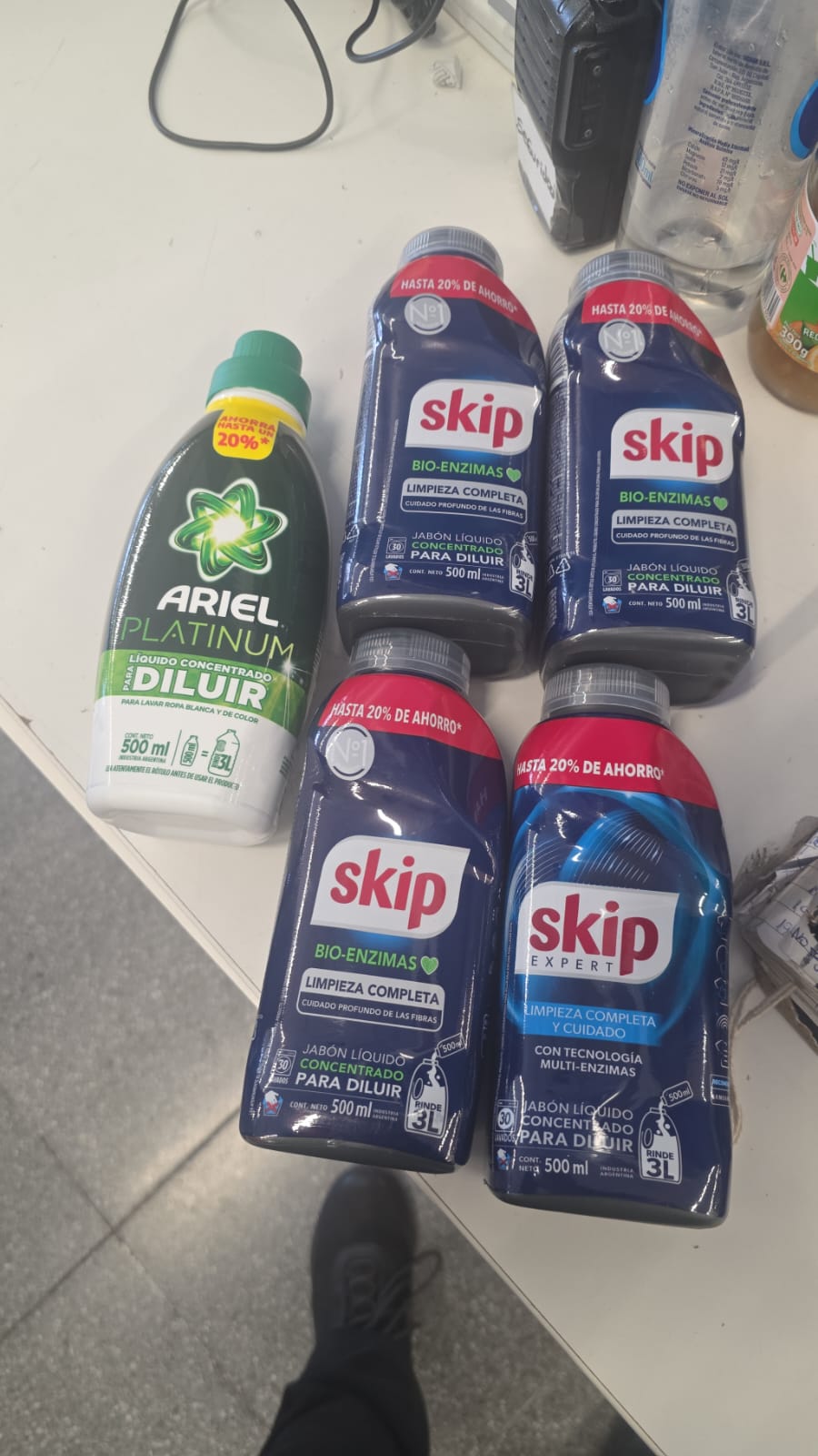 Al momento de retirarse del local, el personal de seguridad les solicitó a ambos que exhibieran voluntariamente el contenido de sus mochilas. La mujer reaccionó de forma alterada y extrajo de su bolso cuatro envases de jabón líquido concentrado marca Skip y uno marca Ariel. Posteriormente, abandonó rápidamente el lugar, dejando al acompañante en el sitio.