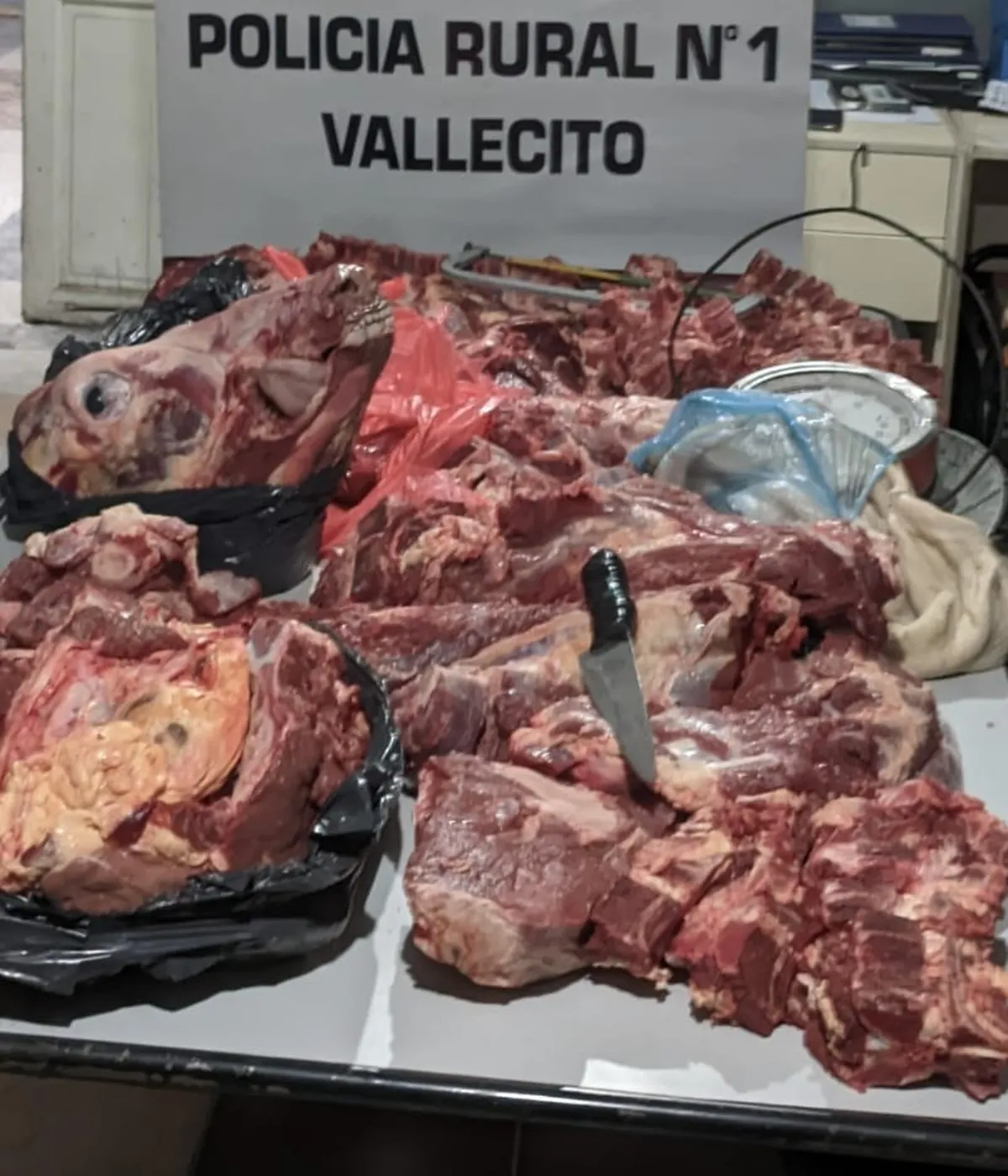 El vehículo era conducido por Héctor Alfredo Aguirre, de 50 años, oriundo de Bermejo, departamento Caucete. Al inspeccionar el baúl, los efectivos encontraron un bulto envuelto en nylon negro que contenía alrededor de 80 kilos de carne, presuntamente de ternero. Además, en el interior del auto se hallaron una balanza, una sierra de mano y un cuchillo de gran tamaño, lo que refuerza la sospecha de que la faena se realizó sin ningún tipo de control bromatológico.