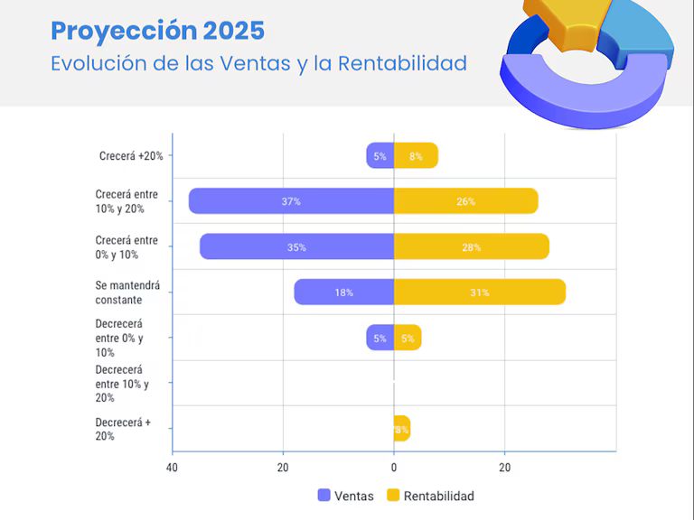 Sobre la rentabilidad, si bien las expectativas son algo más cautelosas que en ventas, también predominan las proyecciones favorables: el 62% de las empresas espera una mejora en sus márgenes, y un 31% cree que se mantendrán estables.