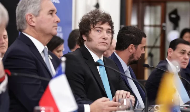 “La Argentina saluda la presión de los Estados Unidos y Donald Trump para liberar al pueblo venezolano. El tiempo de tener un acercamiento tímido en esta materia se ha agotado”, sostuvo Milei ante los líderes del bloque sudamericano.