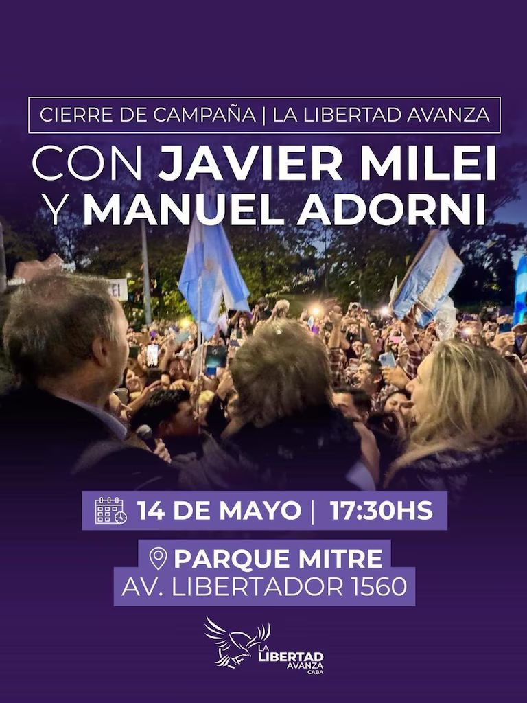 Este miércoles, el jefe de Estado tiene previsto mostrarse por última vez junto a Adorni cuando ambos encabecen, desde las 17:00, el cierre proselitista en el Parque Mitre, en el límite entre Palermo y Recoleta.