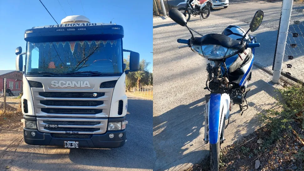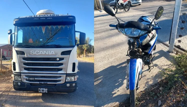 Un siniestro vial tuvo lugar este lunes alrededor de las 17:10 horas en el Callejón Herrera, al sur de la Ruta Nacional 20, en el departamento Santa Lucía, cuando un joven motociclista impactó contra un camión que ingresaba a una empresa.