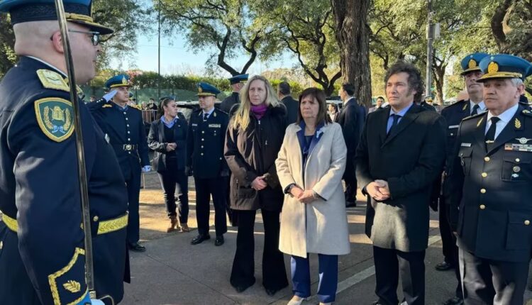 El presidente Javier Milei y la ministra de Seguridad de la Nación, Patricia Bullrich, rindieron homenaje esta tarde a los Policías Federales Caídos en el Cumplimiento del Deber en un acto que se realizó en el barrio de Belgrano, donde está emplazado el monumento que los recuerda, en la esquina de las Avenidas Figueroa Alcorta y Monroe.