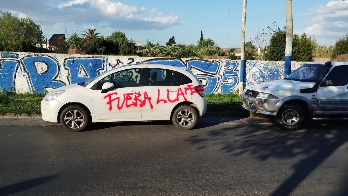 Aparecieron autos escritos con aerosol en La Plata antes del acto de Karina Milei.