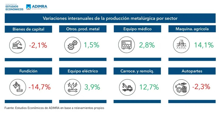 El dato surgió del informe elaborado por el Departamento de Estudios Económicos de la Asociación de Industriales Metalúrgicos de la República Argentina (ADIMRA) señala que la utilización de la capacidad instalada (UCI) registró un aumento de 2,6 puntos porcentuales con respecto al mismo mes del año previo.