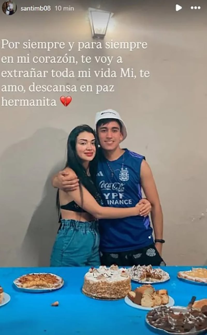 “Por siempre y para siempre en mi corazón, te voy a extrañar toda mi vida Mi. Te amo, descansá en paz, hermanita”, escribió el joven tras conocerse la noticia del fallecimiento. El mensaje, breve y directo, se convirtió en una de las primeras expresiones públicas del impacto que causó la muerte de la joven oriunda del conurbano bonaerense.