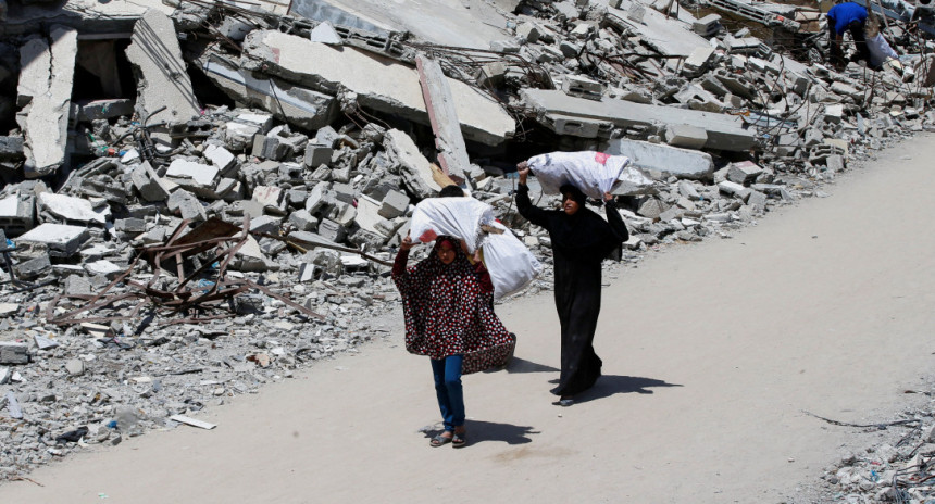 Entrega de ayuda humanitaria en la Franja de Gaza. Foto: REUTERS/Hatem Khaled.