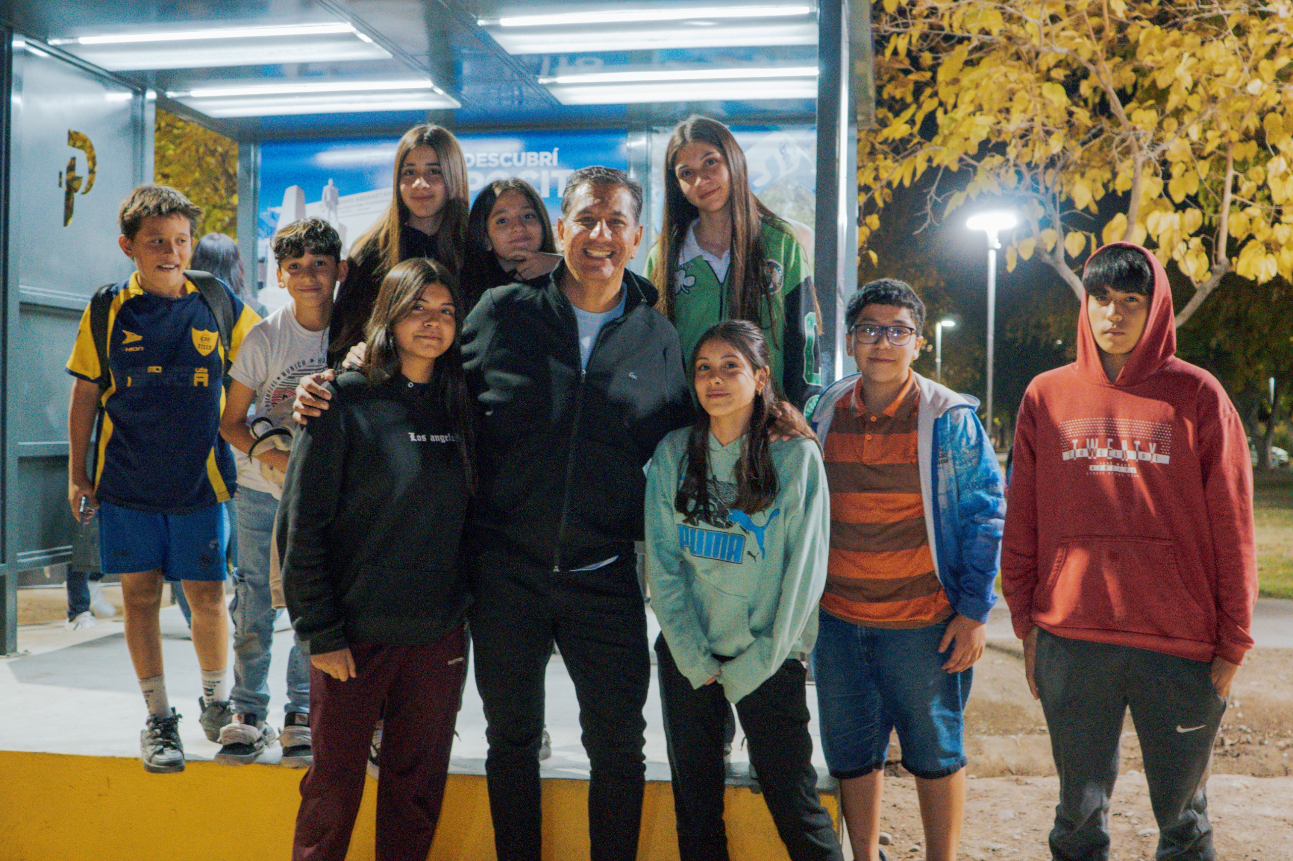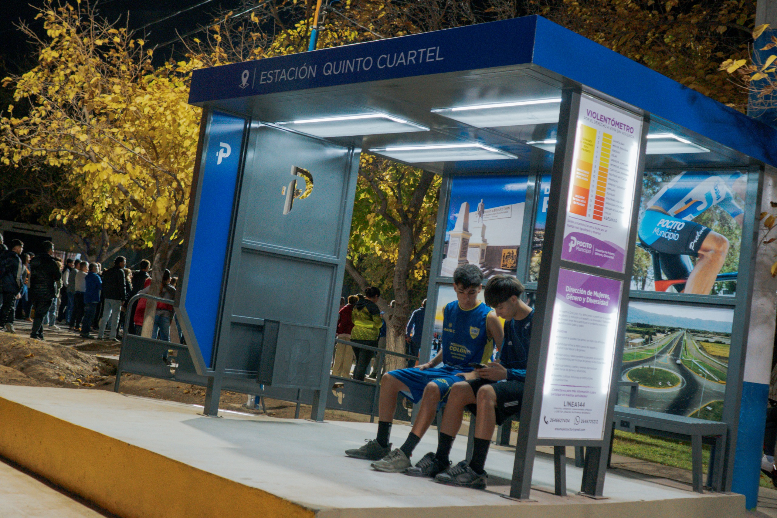 Este martes en la noche, el turno le llegó al Barrio Quinto Cuartel, en donde el Municipio colocó 58 luminarias LED y además instaló un parador de colectivo, colocó el nombre de las calles y erradicó los árboles que estaban secos.