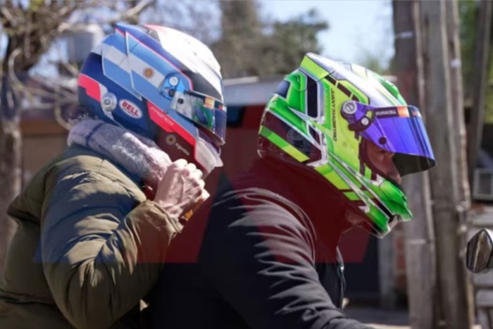 La mujer, que llegó a bordo de una moto, portaba el casco que utilizó su hijo cuando pertenecía a la academia de la escudería Williams, previo a llegar a la máxima categoría del automovilismo en 2024.