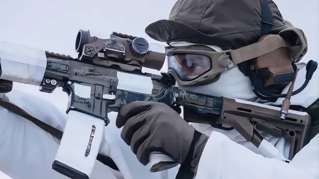 Un soldado de la armada real danesa, práctica ejercicios militares en Groenlandia.