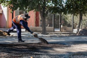Las labores incluyen la limpieza de la zona intervenida, la aplicación de riego de liga, la colocación de mezcla asfáltica en caliente, y la compactación y nivelación de la superficie. Esta etapa asegura una base adecuada para la posterior repavimentación, optimizando la transitabilidad, la seguridad vial y la vida útil de las calles.