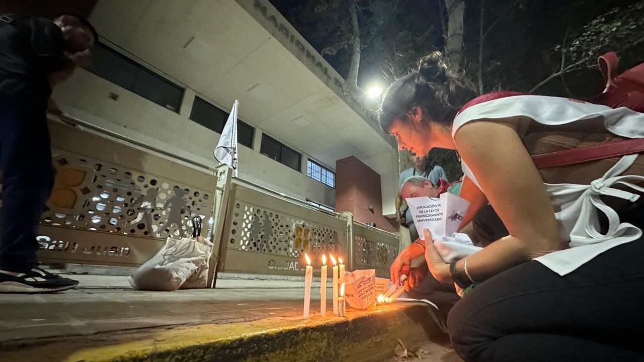 En el marco de una jornada federal de protesta, la comunidad de la Universidad Nacional de San Juan (UNSJ) protagonizó este miércoles una emotiva marcha de antorchas bajo el lema “La Universidad no se apaga”. La movilización, que tuvo su epicentro frente a la Escuela de Comercio Libertador General San Martín, buscó visibilizar la crisis presupuestaria y el deterioro salarial que afecta al sistema científico y educativo superior.
