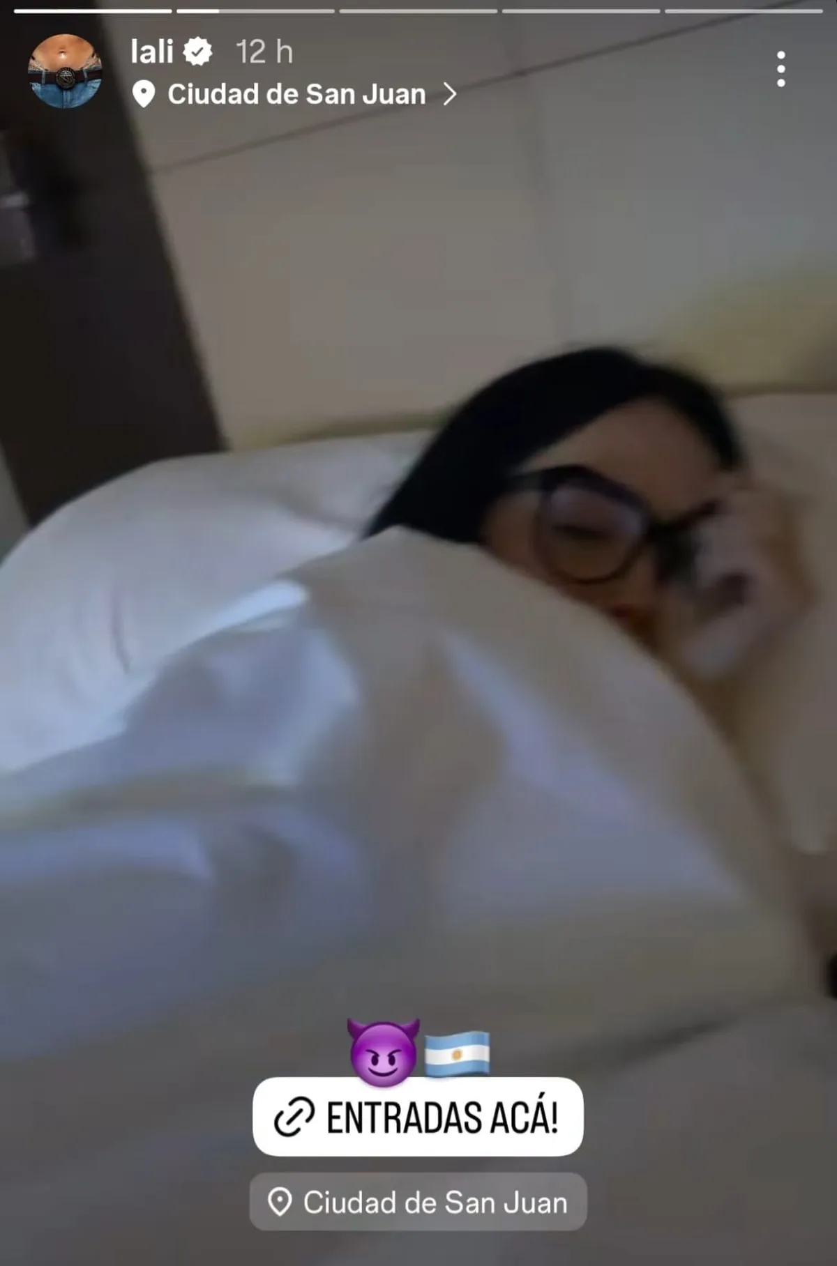 Lali ya está en San Juan: video íntimo desde la cama y últimas entradas a la venta para el show de esta noche