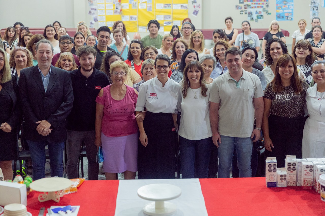 La Intendente Susana Laciar compartió momentos de aprendizaje con los presentes y hasta participó de la decoración de una torta artesanal de la mano de María Sol Arceo, una técnica pastelera reconocida en todo el país.