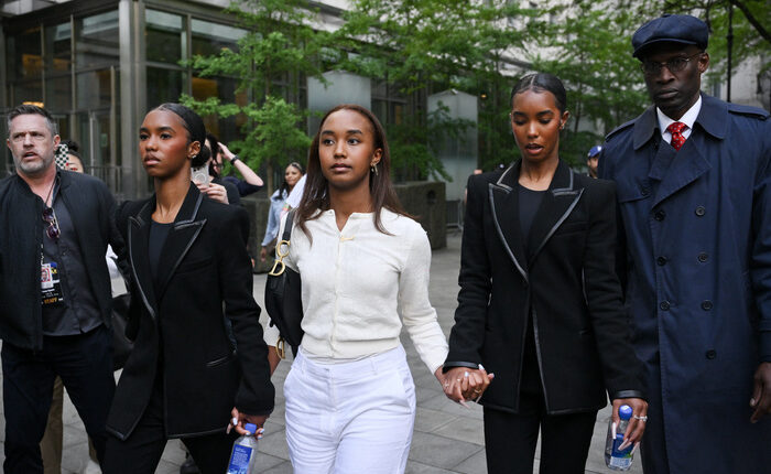 Con pelo canoso, ya que están prohibidos las tinturas en la cárcel donde aguarda el juicio desde septiembre pasado, Combs se vio arropado en la corte del Tribunal Federal del Distrito Sur en Mahattan por su madre, Janice, y varios de sus hijos, entre ellos, sus hijas gemelas de 17 años.
