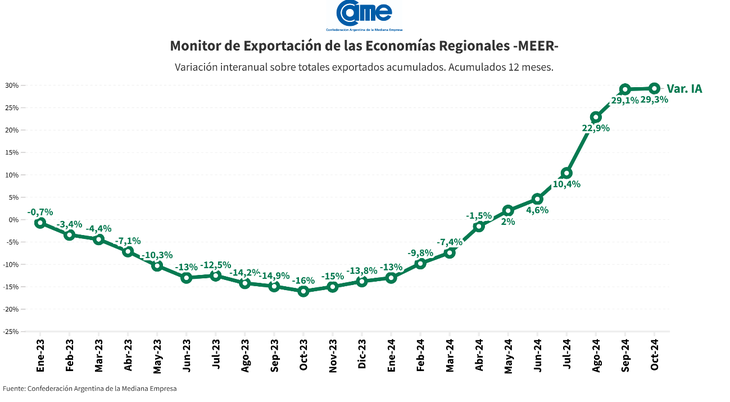 El informe pertenece al Monitor de Exportaciones de las Economías Regionales (MEER) elaborado por la Confederación Argentina de la Mediana Empresa (CAME).