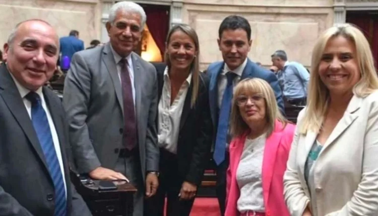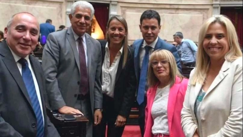 A favor del rechazo al veto: Walberto Allende, Jorge Chica y Fabiola Aubone (todos del justicialismo), junto a Nancy Picón y María de los Ángeles Moreno (representantes del orreguismo).