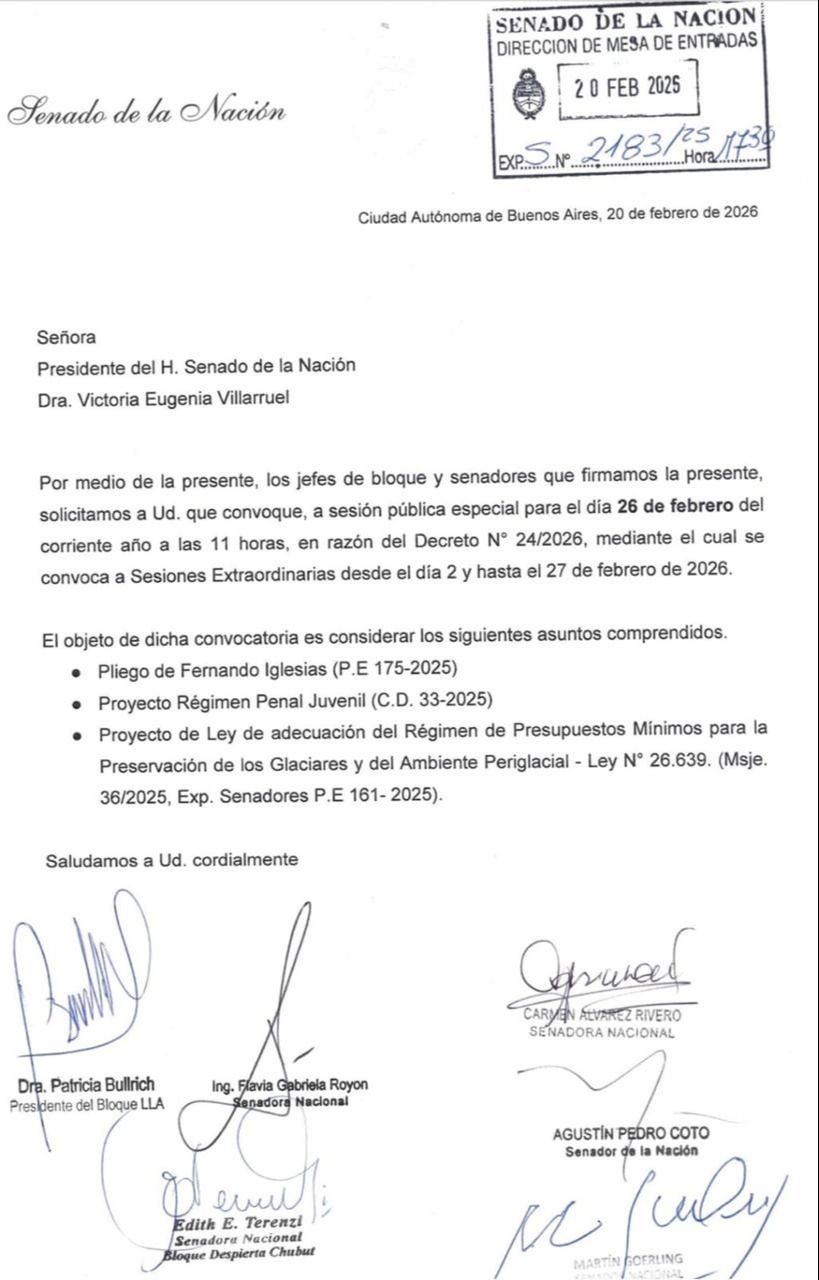 El Senado de la Nación se apresta a debatir esta semana uno de los proyectos de mayor impacto político y productivo para las provincias mineras. Se trata de la aclaratoria a la Ley de Glaciares, una iniciativa impulsada por el Ejecutivo nacional que ya cuenta con convocatoria a sesión especial para el jueves 26, tras el pedido formal de bloques legislativos y el aval de la presidencia de la Cámara alta.