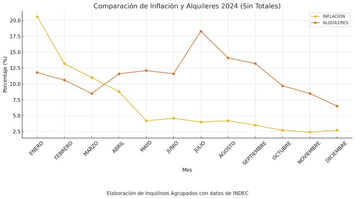 Los alquileres aumentaron un 262,8% en 2024 frente a una inflación del 117,8%