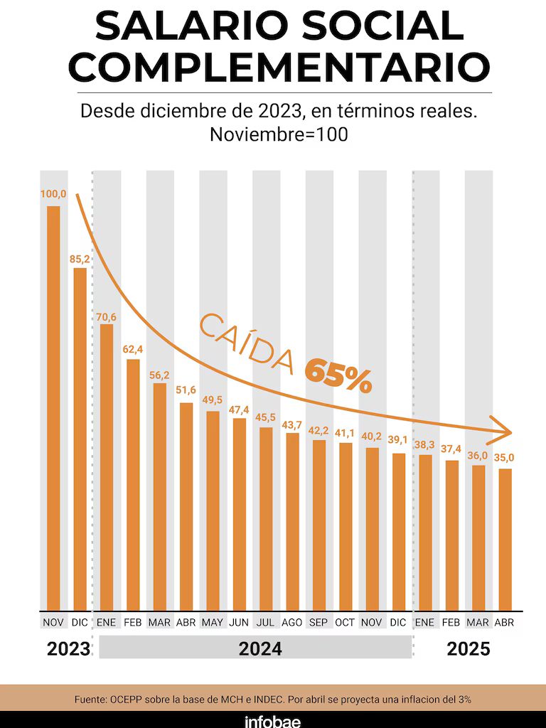 Las organizaciones sociales que integran la Unión Trabajadores de la Economía Popular (UTEP) se manifestarán hoy, a partir de las 10 de la mañana, frente a la Secretaría de Trabajo para exigirle al gobierno de Javier Milei un incremento “urgente” del Salario Social Complementario, destinado a las personas que se encuentren en situación de alta vulnerabilidad social y económica, “congelado” desde el 10 de diciembre de 2023 en $78.000. Significa una pérdida real del 65% hasta abril de 2025. También reclaman continuidad en el monotributo social y “la devolución de los alimentos a los comedores populares”. A la marcha adhieren el Frente Barrial de la CTA, la organización Territorios en Lucha y el Frente de Lucha Piquetero.