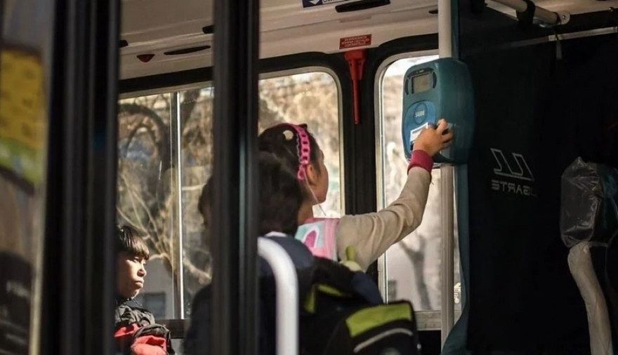 Alumnos que viajan con uniforme o guardapolvo escolar, ya que pueden acreditar su condición directamente ante los choferes.
