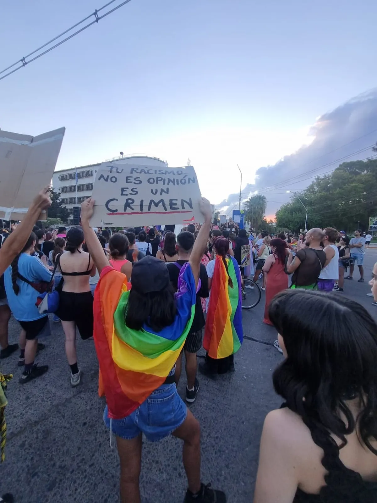 En la provincia, la movilización tuvo lugar en la Plaza 25 de Mayo, donde miembros del colectivo LGTBIQ+ y organizaciones sociales, políticas y sindicales se congregaron de manera pacífica para manifestar su rechazo a los comentarios de Milei en el Foro Económico Mundial de Davos. El presidente generó gran polémica al asociar la ideología de género con el abuso infantil, mencionando el caso de una pareja homosexual en Estados Unidos y afirmando que “en sus versiones más extremas, la ideología de género constituye lisa y llanamente abuso infantil. Son pedófilos”. Además, cuestionó la existencia del femicidio y calificó al feminismo como una “distorsión”.