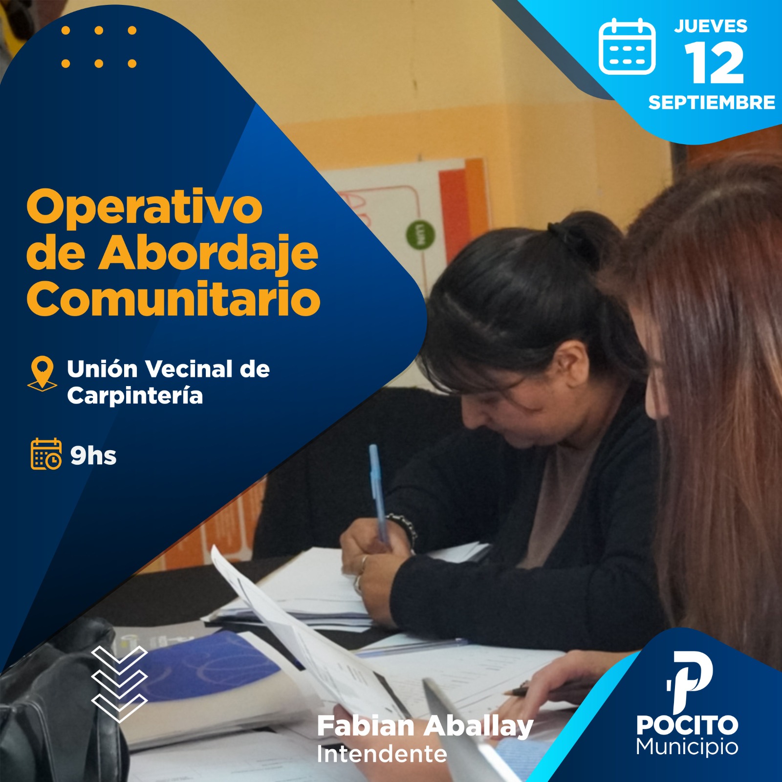Médicos y odontólogos del Municipio participarán del nuevo Operativo de Abordaje Comunitario que llevará adelante la gestión de Fabian Aballay en la Unión Vecinal de Carpintería el próximo jueves 12 de septiembre a partir de las 9 horas.