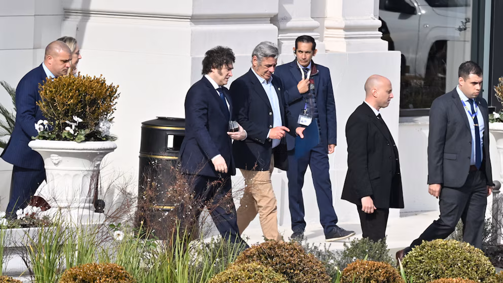 Milei llegó pasadas las 10 a la reunión acompañado por su hermana Karina y por su equipo de prensa. Lo esperaban los titulares de la Mesa de Enlace: Nicolás Pino (SRA), Lucas Magnano (Coninagro), Carlos Castagnani (Confederaciones Rurales Argentinas) y Andrea Sarnari (Federación Agraria). Estaba previsto que el Presidente visitara a los animales que estaban siendo descargados para la expo, pero cerca de las 12 se retiró del predio ubicado en el barrio de Palermo.