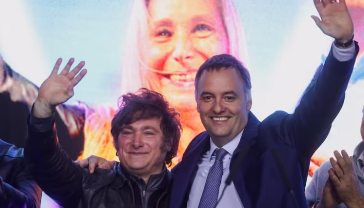 El presidente Javier Milei leEl presidente Javier Milei le toma juramente al flamante jefe de Gabinete, Manuel Adorni