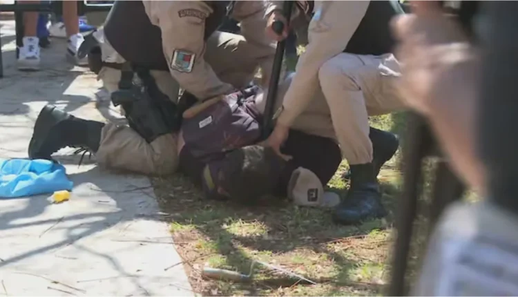 En ese choque desarmaron un gazebo que habían armado de La Libertad Avanza al grito de “Milei, basura, vos sos la dictadura”. Entre los grupos que repudiaban la presencia del Presidente había también banderas del PJ. De acuerdo a la información oficial, hubo al menos tres personas detenidas por los incidentes.