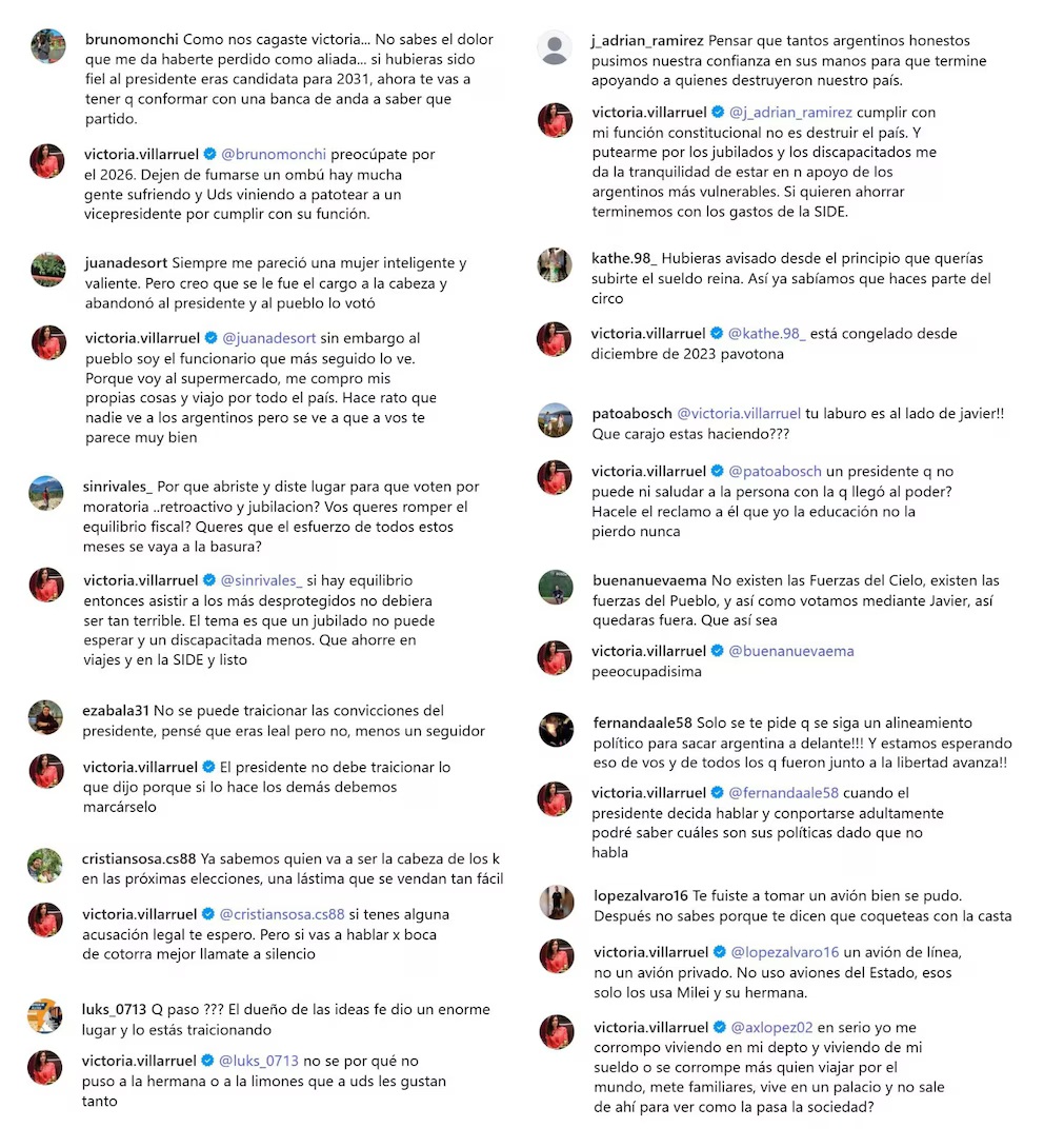 Los intercambios de Villarruel con usuarios de InstagramSon expresiones que dejaron en claro que Villarruel pasó de la resistencia a la ofensiva. Y que anticipan una pésima convivencia. Escenas que hacen juego con la relación de Julio Cobos con Cristina Kirchner después del “voto no positivo” por la resolución 125, allá por el año 2008. En la Casa Rosada ya reconocen a la Vicepresidente como una opositora.