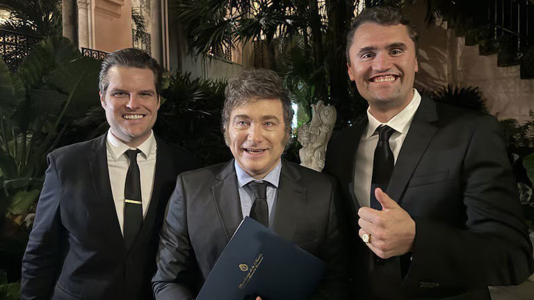 Javier Milei y Charlie Kirk en Mar -a- Lago