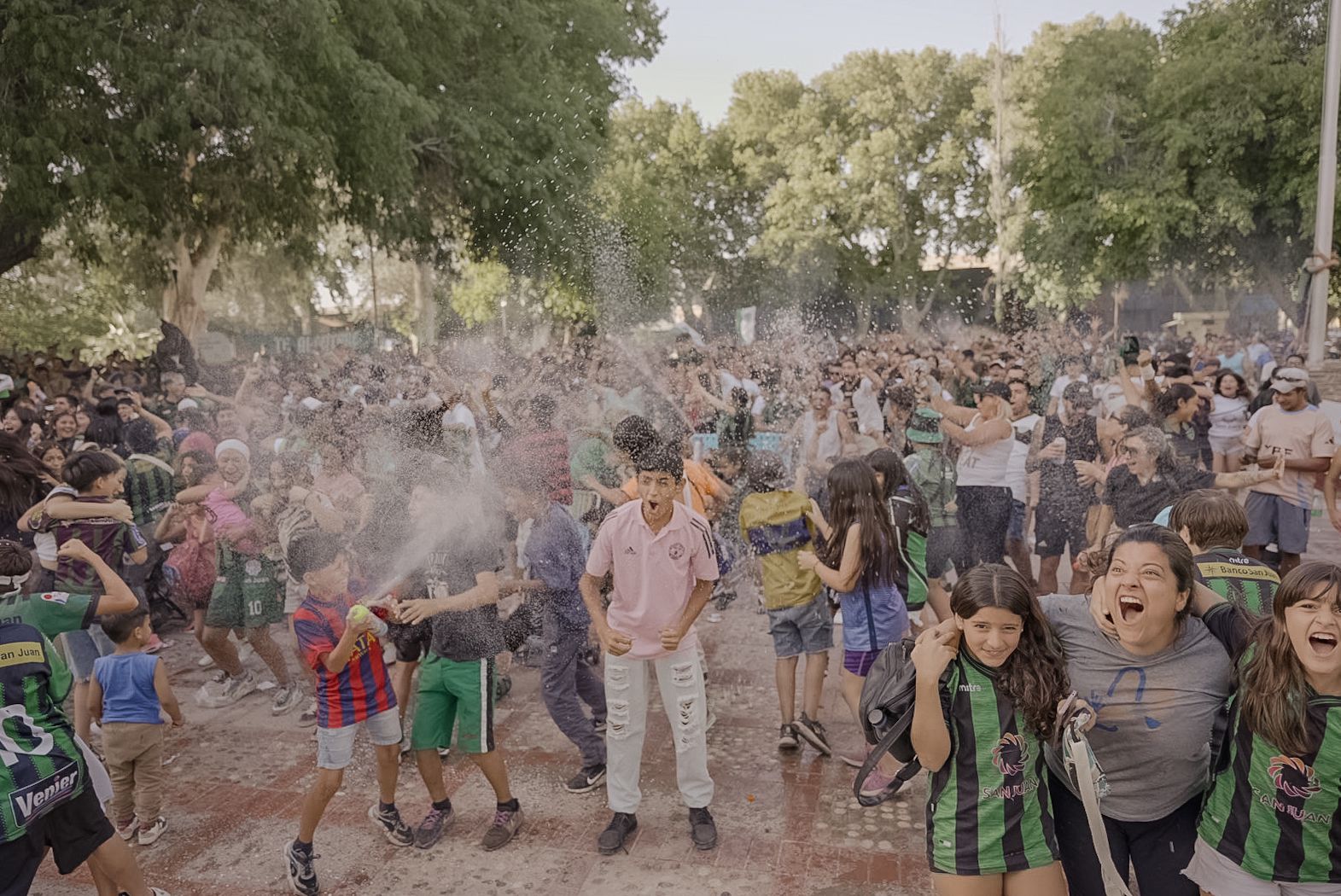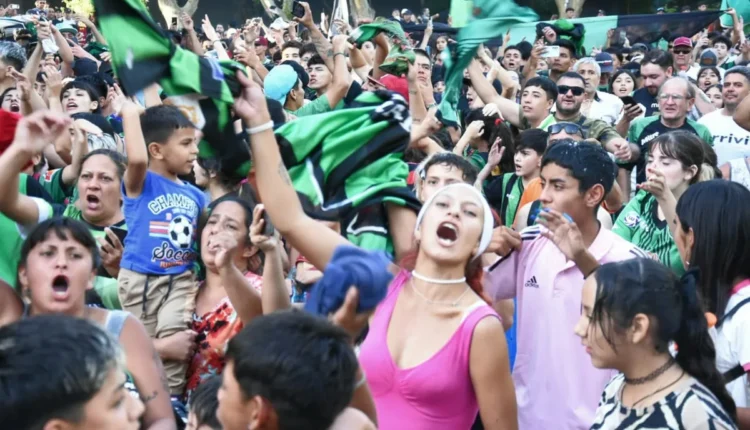 Por otro, en el lugar sagrado de los festejos: la Plaza 25 de Mayo. Grandes y chicos, familias enteras se congregaron en el corazón del microcentro para celebrar la alegría que el Verdinegro trajo a los sanjuaninos.