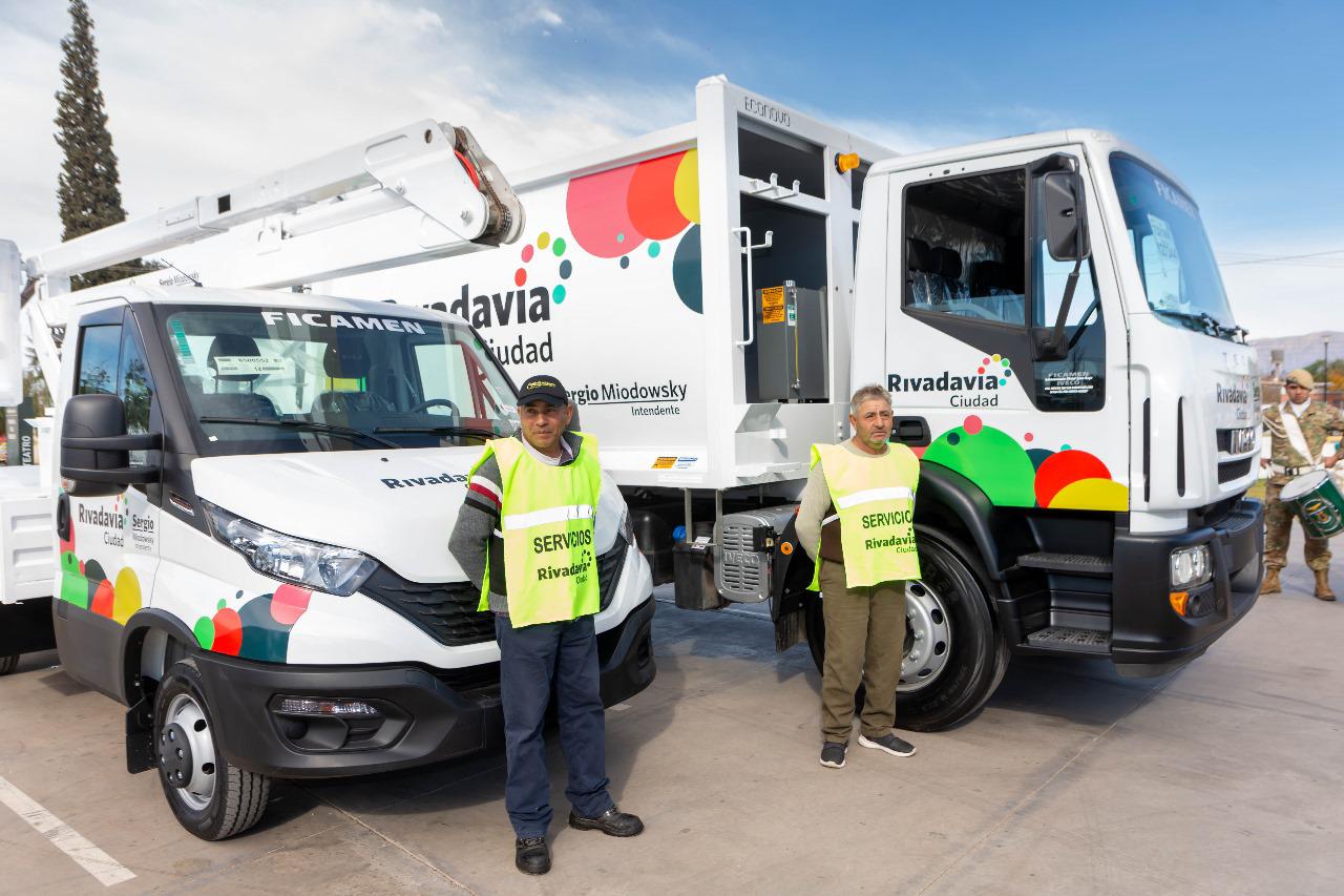 Se trata de tres autos Fiat Cronos 1.3 like equipados para prevención. Dos camiones tipo pick up Shineray cabina simple T30. Un camión Iveco 35150 Dayly con Hodrogrúa. Y un camión Iveco 170E28 compactador. Las unidades comenzarán a prestar servicios inmediatamente ya que salen preparados para recorrer las calles de Rivadavia.